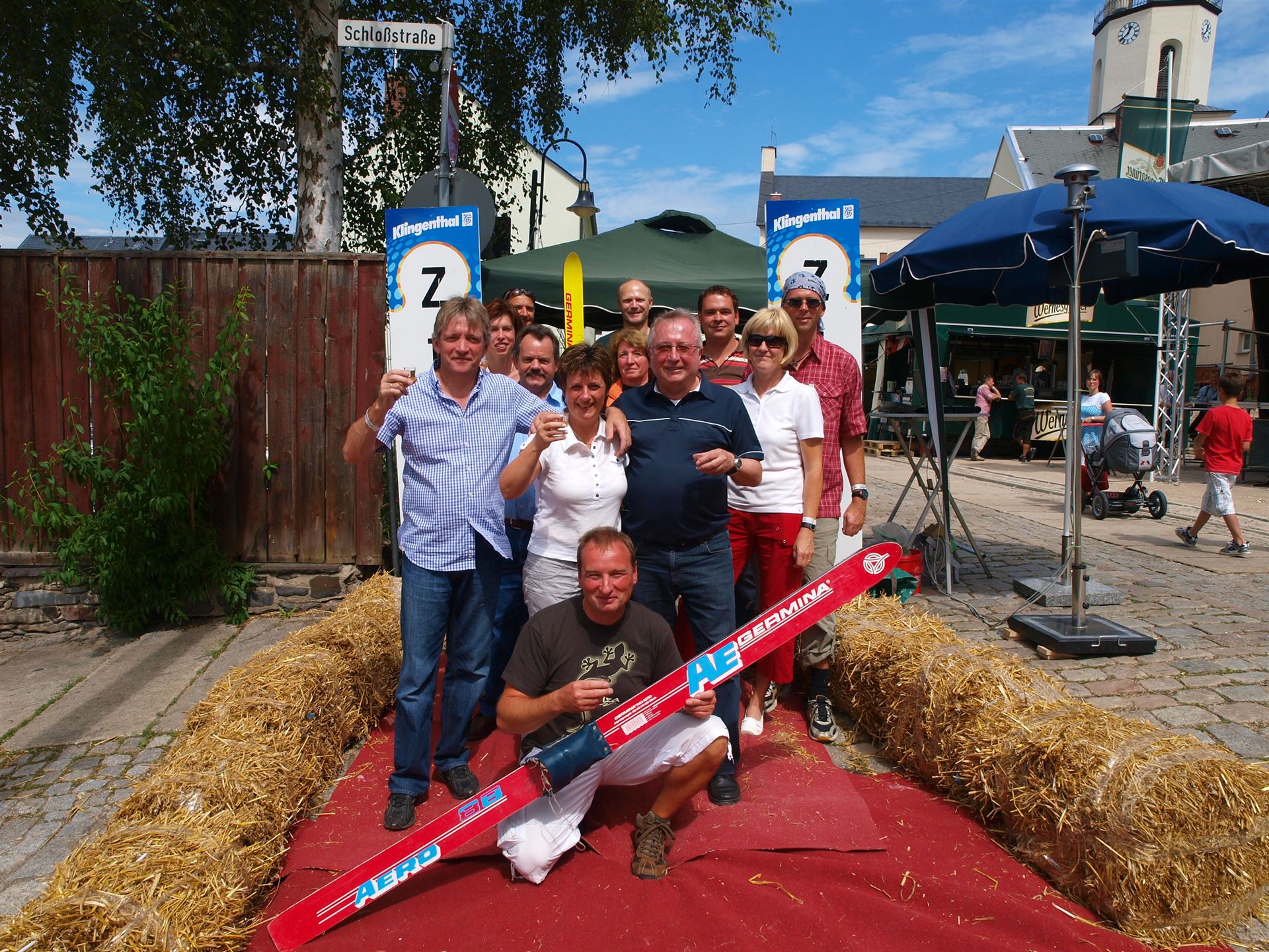 Bei herrlichem Sonnenschein starteten wir dann mit Oberbürgermeister Deckert als Vorläufer unseren Zweikampf der Gemeinden im Sommerskilanglauf. Die Beerheider haben nur ganz knappgewonnen. Für Beerheide starteten Katrin und Thomas Pohl, Elfi Wappler und Katja und Enrico Wolf und für die Gäste waren Bürgermeister Bernd Gassenschmidt, Conni Willin, Armin Bender, Norbert Seywald und Michael Steiert am Start. Alle Skiläufer gaben ihr bestes und wurden zum Schluss mit einem Zipfelschnaps vom Skihüttenteam belohnt.
