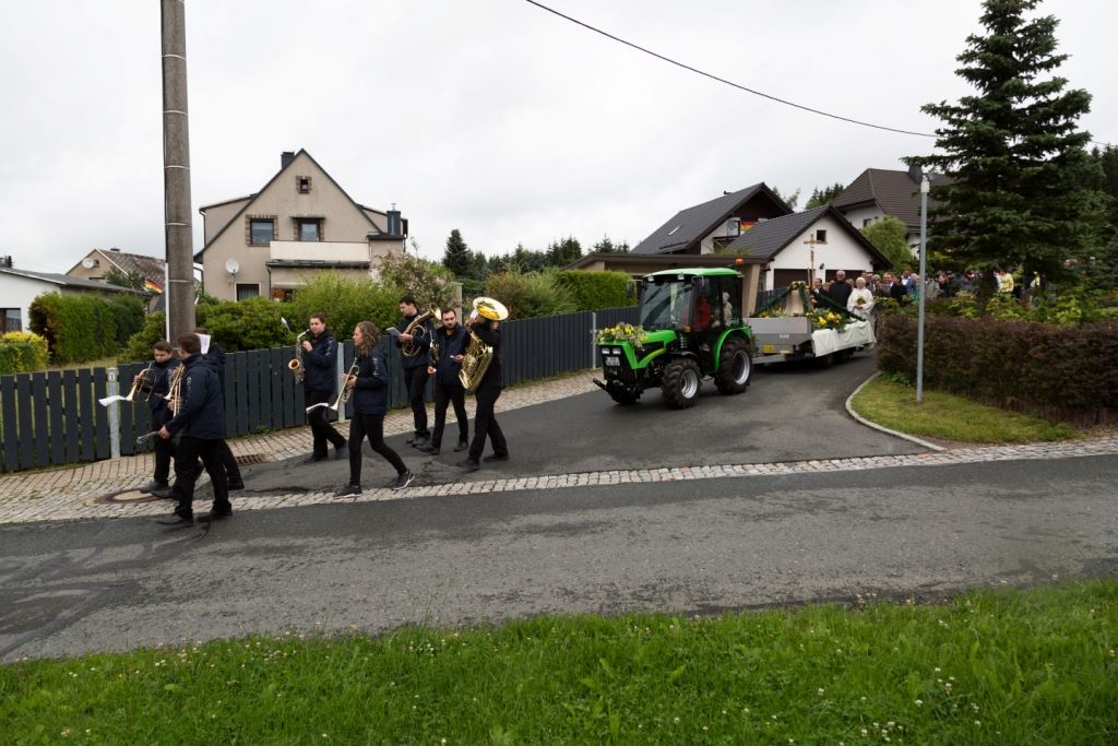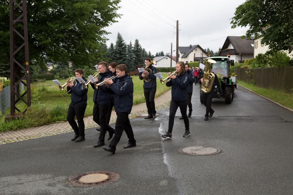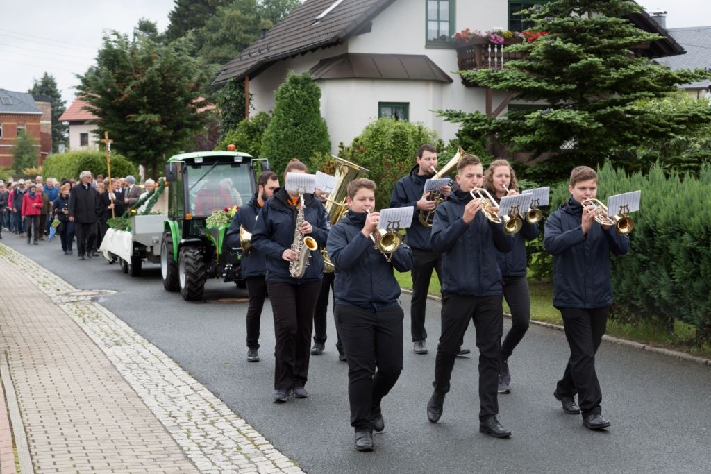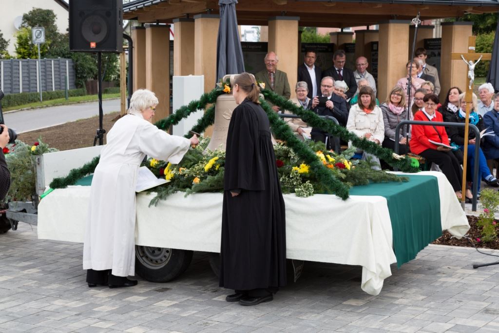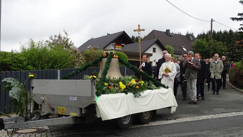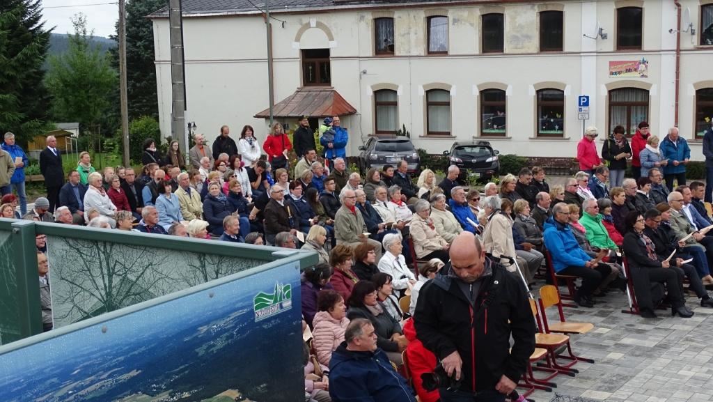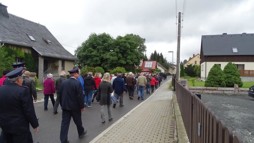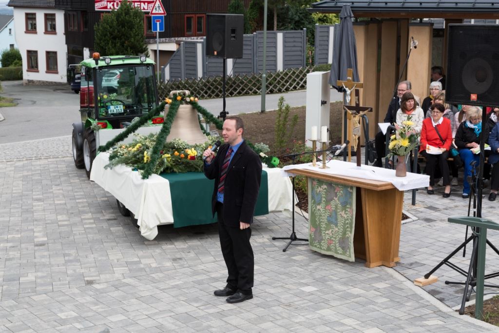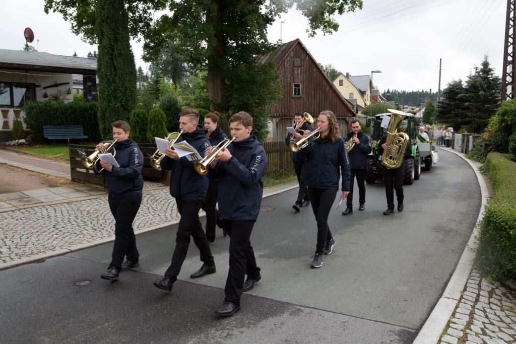 Am Sonntag, dem 24. Juni fand als Höhepunkt der Feierlichkeiten zum Partnerschaftstreffen ein Festumzug und Ökumenischer Open-Air-Gottesdienst mit Weihe der Beerheider Glocke statt. Betreiber dieser Glocke wird die Evangelische St.-Laurentius-Kirchgemeinde Auerbach sein. Ein herzlicher Dank geht an all diejenigen, die diesen Tag vorbereitet und durchgeführt haben; zu danken ist unserer Stadt Auerbach mit Stadtrat und Stadtverwaltung für die Unterstützung beim Bau und der Einweihung des Ortsplatzes, der Evangelischen und Katholischen Kirchgemeinde zu Auerbach mit Frau Pfrn. Dr. Schmutzler und Frau Mahler sowie dem Kirchen- und Posaunenchor unter Leitung von Herrn KMD Meier für die Ausgestaltung des Gottesdienstes, dem Jugendblasorchester Auerbach unter Leitung von Andreas Schmidt für die Mitwirkung beim Festumzug, den städtischen Mitarbeitern im Bauhof, dem Ordnungsamt und dem Bereich Marktwesen sowie allen im Vorfeld beteiligten Verwaltungsmitarbeitern- besonders im Bereich Bauwesen und Finanzen. Ein besonderer Dank geht an die zahlreichen ehrenamtlichen Mitstreiter, die aus Beerheide von der Kirchgemeinde und der Landeskirchlichen Gemeinschaft zusammen mit dem Ortschaftsrat diesen Festtag geplant, vorbereitet und gestaltet haben. Danke auch allen Besuchern, die als Gäste begrüßt werden konnten – so kamen neben den Freunden aus der Partnergemeinde zur Beerheider Ortsplatzeinweihung auch die vogtländische Bundestagsabgeordnete Yvonne Magwas, der Landtagsabgeordnete unseres Wahlkreises Sören Voigt, der Stellvertreter des Oberbürgermeisters unserer Stadt Auerbach Joachim Otto sowie mehrere Stadträte, Vertreter der Stadtverwaltung, des Kirchenvorstandes der St.-Laurentiuskirchgemeinde Auerbach, Mitglieder der Beerheider Vereine und Interessengemeinschaften und zahlreiche weitere Einwohner aus unserer Ortschaft sowie Gäste aus Auerbach und aus den Nachbargemeinden.