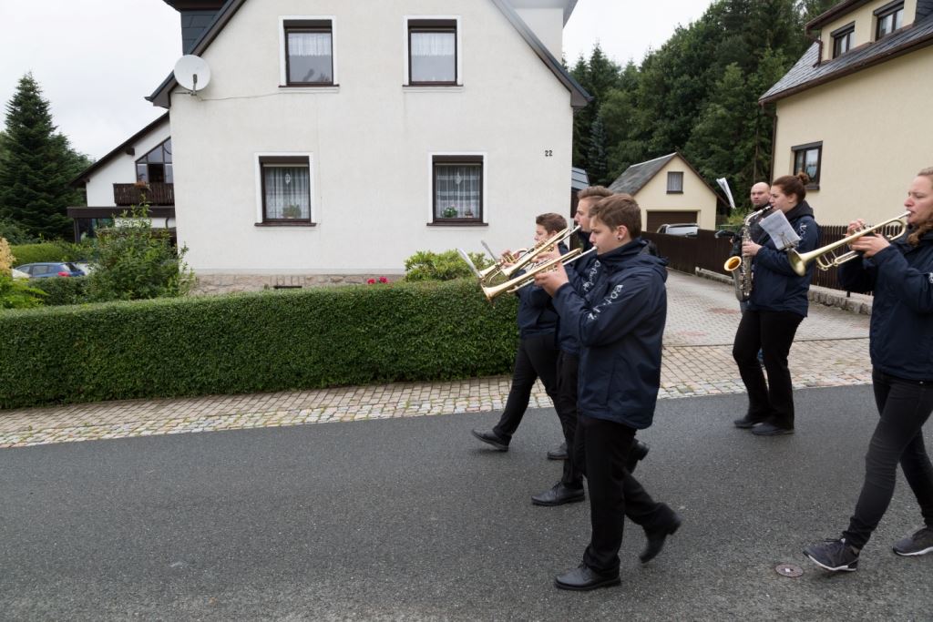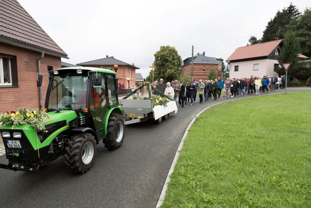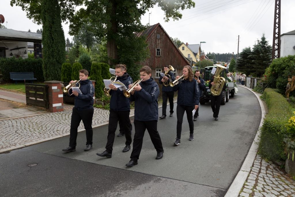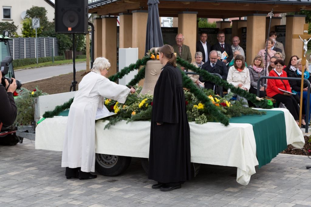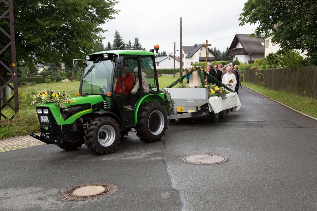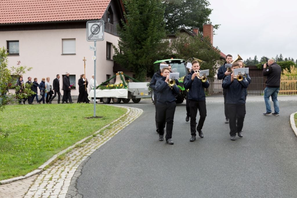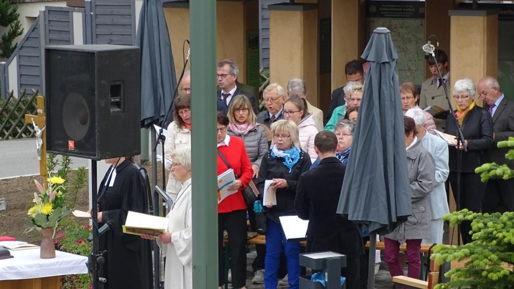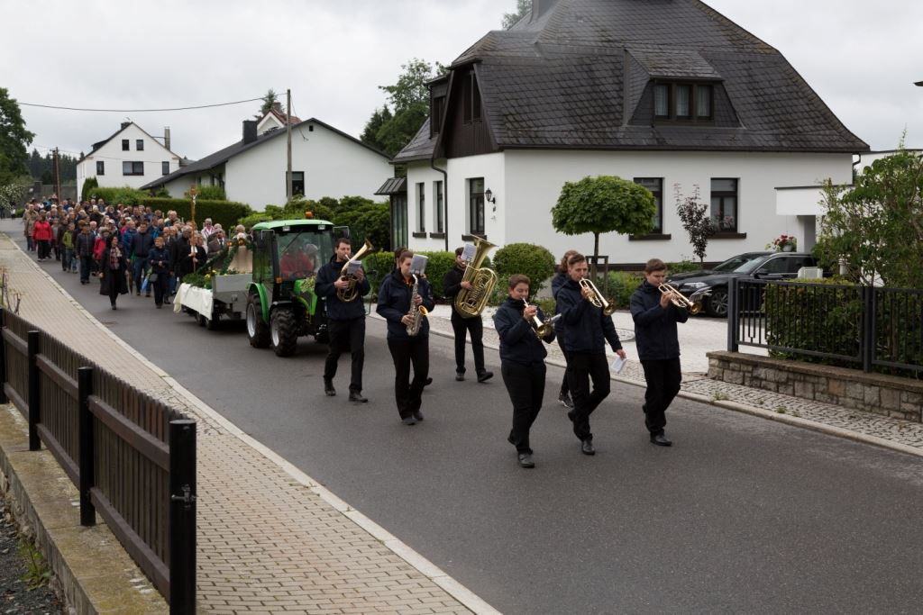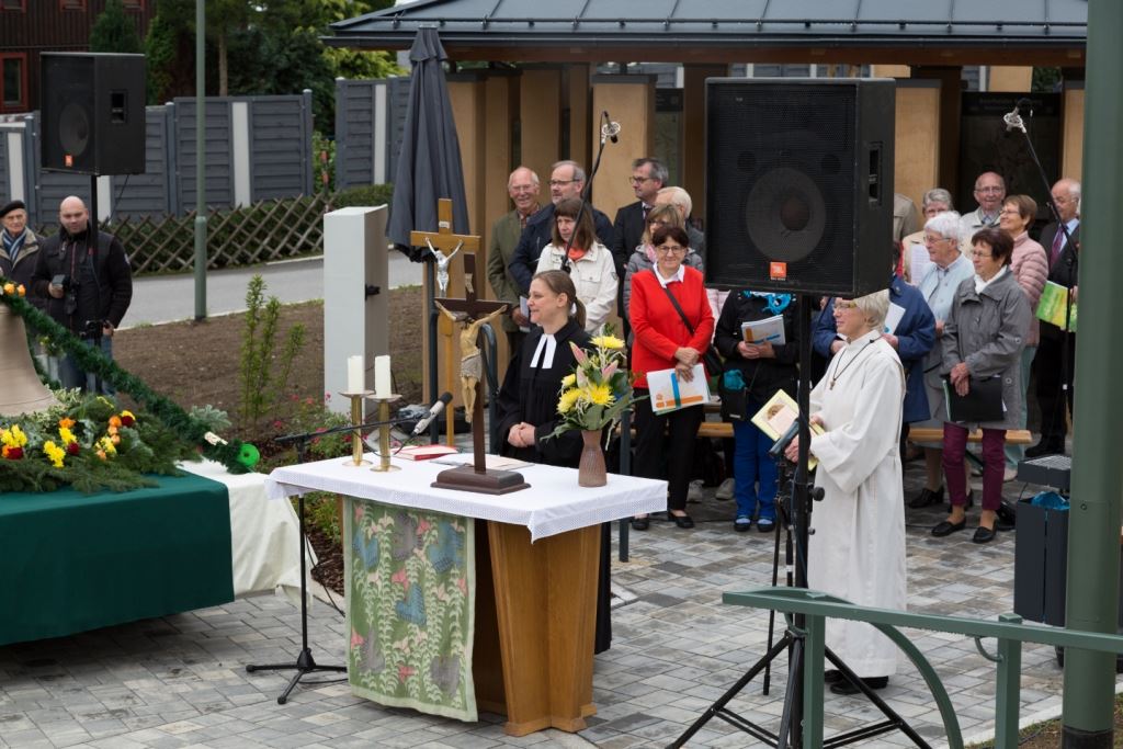 Am Sonntag, dem 24. Juni fand als Höhepunkt der Feierlichkeiten zum Partnerschaftstreffen ein Festumzug und Ökumenischer Open-Air-Gottesdienst mit Weihe der Beerheider Glocke statt. Betreiber dieser Glocke wird die Evangelische St.-Laurentius-Kirchgemeinde Auerbach sein. Ein herzlicher Dank geht an all diejenigen, die diesen Tag vorbereitet und durchgeführt haben; zu danken ist unserer Stadt Auerbach mit Stadtrat und Stadtverwaltung für die Unterstützung beim Bau und der Einweihung des Ortsplatzes, der Evangelischen und Katholischen Kirchgemeinde zu Auerbach mit Frau Pfrn. Dr. Schmutzler und Frau Mahler sowie dem Kirchen- und Posaunenchor unter Leitung von Herrn KMD Meier für die Ausgestaltung des Gottesdienstes, dem Jugendblasorchester Auerbach unter Leitung von Andreas Schmidt für die Mitwirkung beim Festumzug, den städtischen Mitarbeitern im Bauhof, dem Ordnungsamt und dem Bereich Marktwesen sowie allen im Vorfeld beteiligten Verwaltungsmitarbeitern- besonders im Bereich Bauwesen und Finanzen. Ein besonderer Dank geht an die zahlreichen ehrenamtlichen Mitstreiter, die aus Beerheide von der Kirchgemeinde und der Landeskirchlichen Gemeinschaft zusammen mit dem Ortschaftsrat diesen Festtag geplant, vorbereitet und gestaltet haben. Danke auch allen Besuchern, die als Gäste begrüßt werden konnten – so kamen neben den Freunden aus der Partnergemeinde zur Beerheider Ortsplatzeinweihung auch die vogtländische Bundestagsabgeordnete Yvonne Magwas, der Landtagsabgeordnete unseres Wahlkreises Sören Voigt, der Stellvertreter des Oberbürgermeisters unserer Stadt Auerbach Joachim Otto sowie mehrere Stadträte, Vertreter der Stadtverwaltung, des Kirchenvorstandes der St.-Laurentiuskirchgemeinde Auerbach, Mitglieder der Beerheider Vereine und Interessengemeinschaften und zahlreiche weitere Einwohner aus unserer Ortschaft sowie Gäste aus Auerbach und aus den Nachbargemeinden.