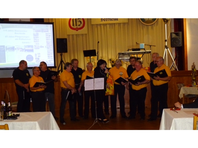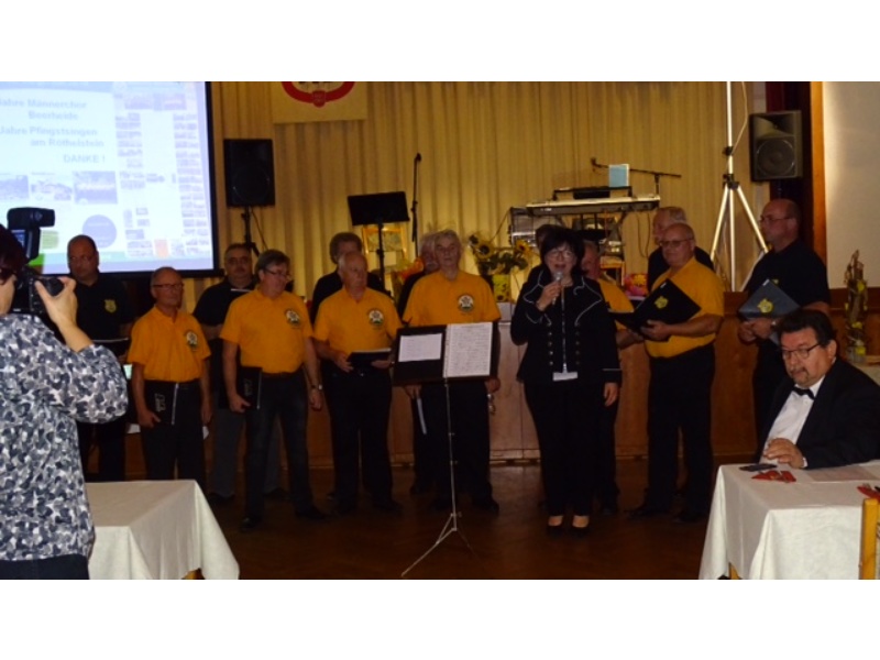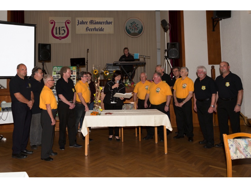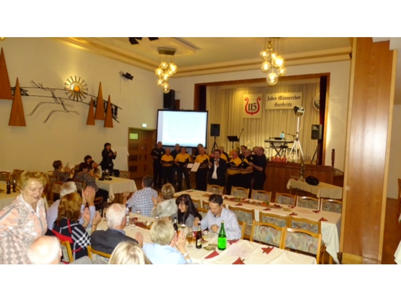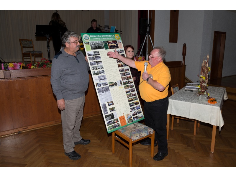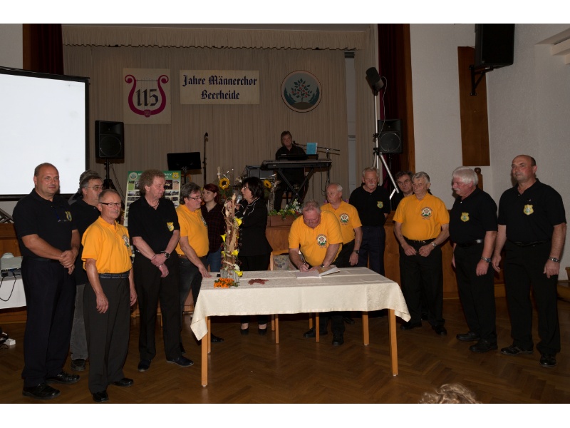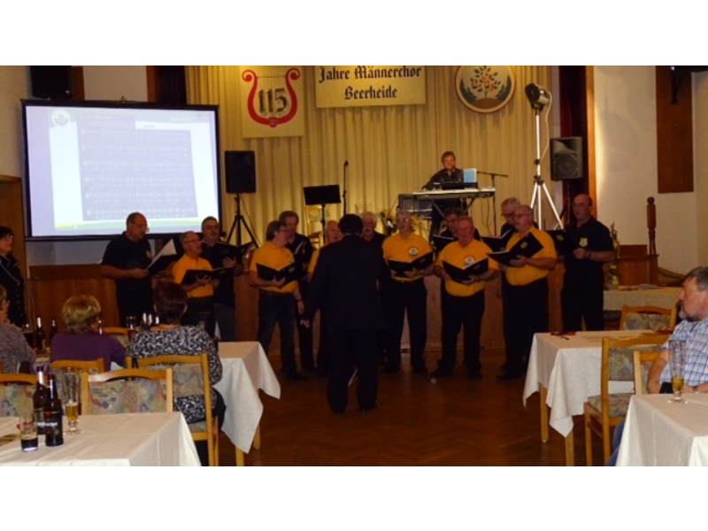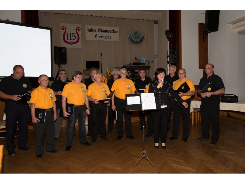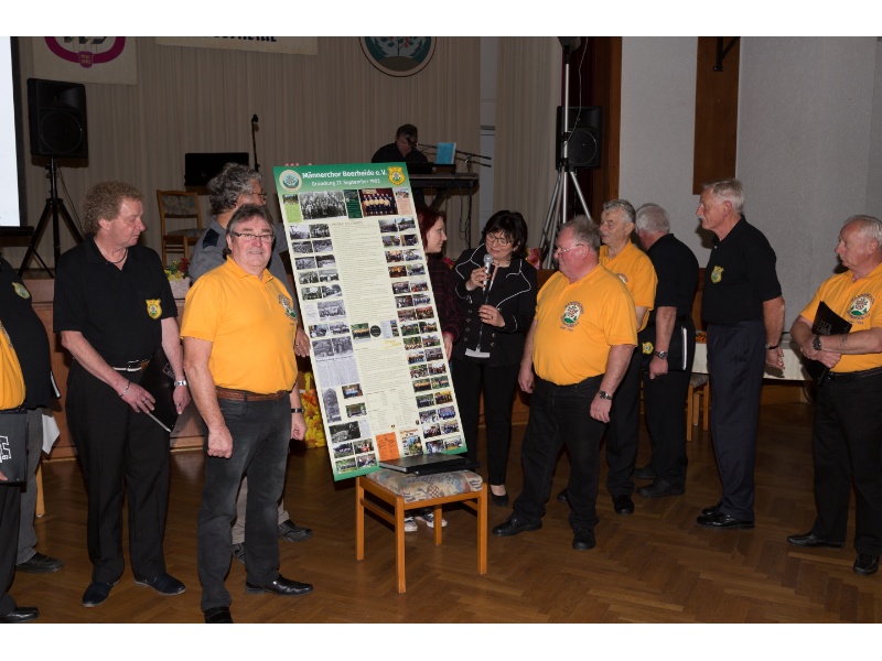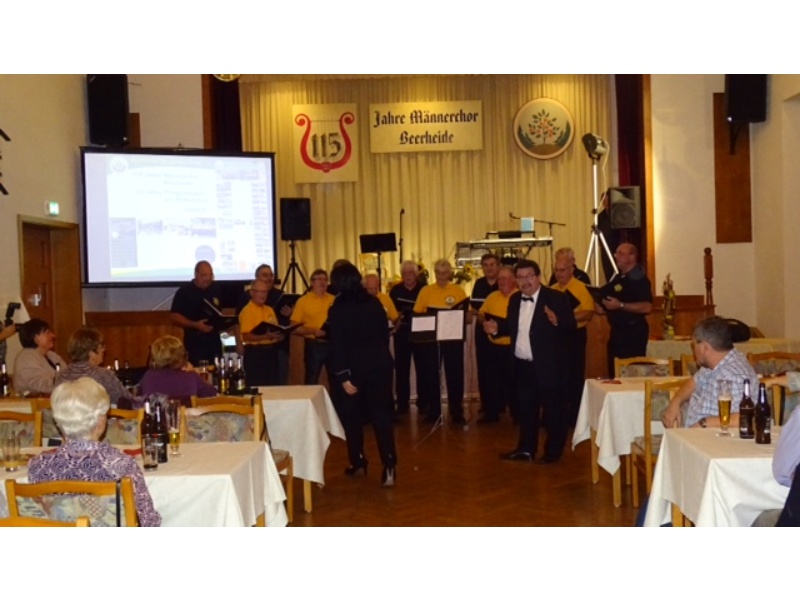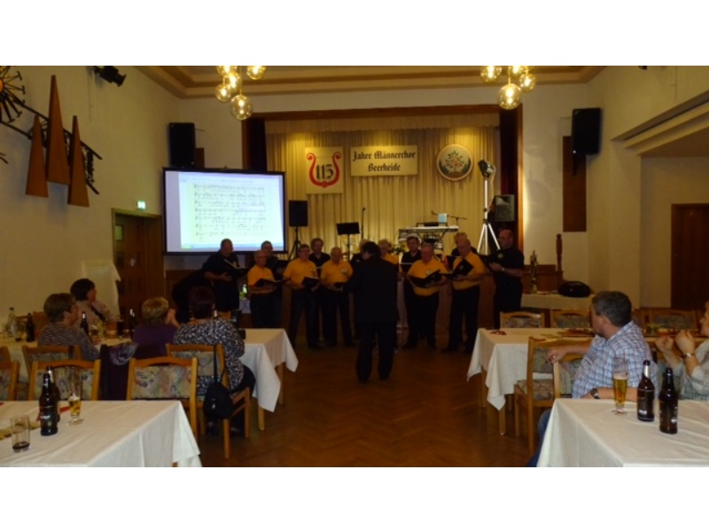 Die Ehrung der Sänger mit einer Chronik-Tafel war eingebunden in ein Programm des Chores. Es wurden 6 Lieder vorgetragen, darunter 2 Stücke mit Text und Musik aus der Feder von Günter Fischer. Dies sind die Titel „Am Röthelstein in Beerheide“ und „Heimat“, die auch als Liedpostkarten veröffentlicht worden sind. Alle weiteren 4 Lieder, die der Chor zu Gehör brachte, wurden von Günter Fischer speziell für den Beerheider Männerchor arrangiert, u.a. auch das „Beerheider Lied“.