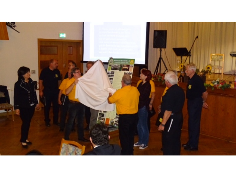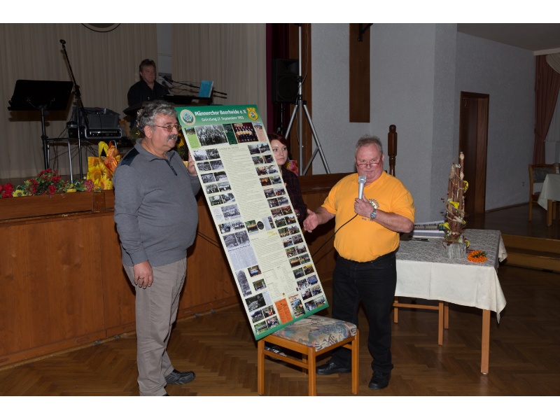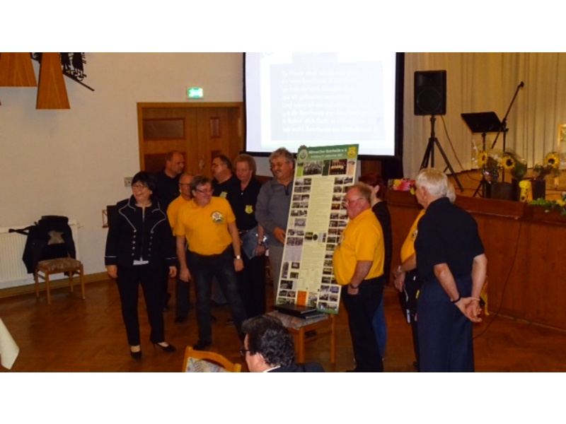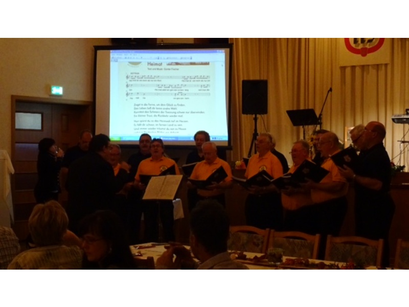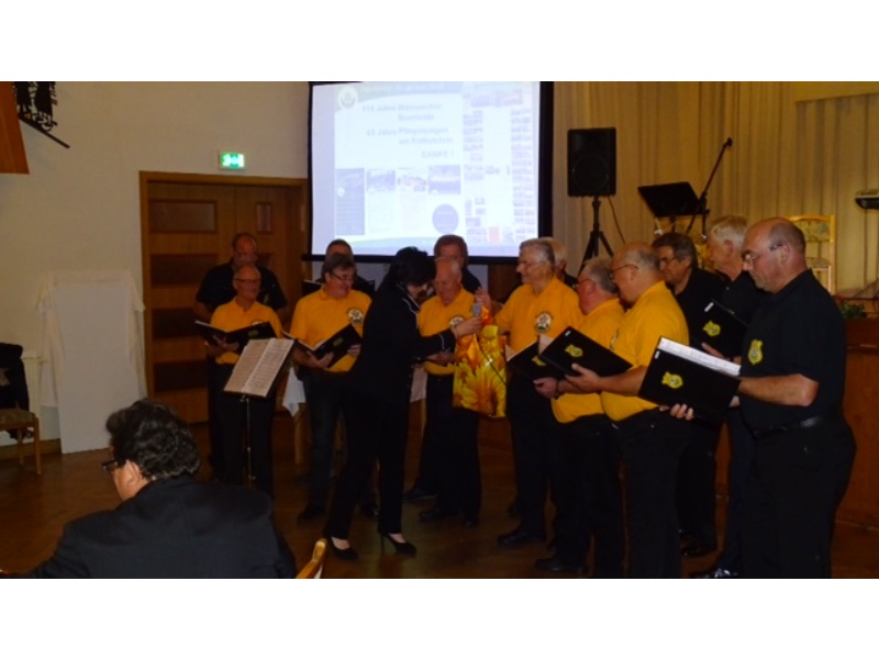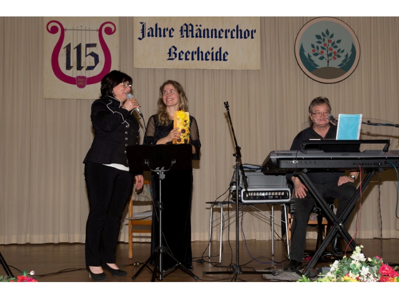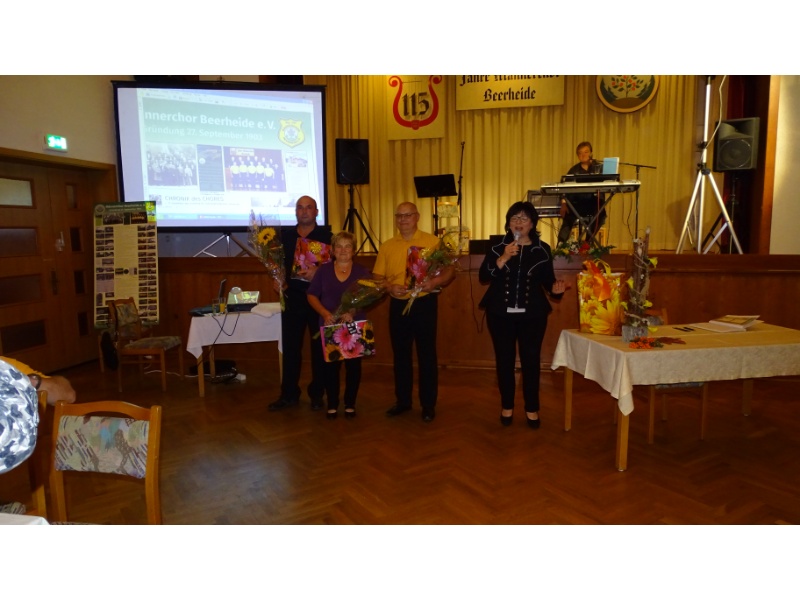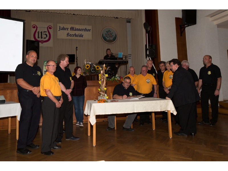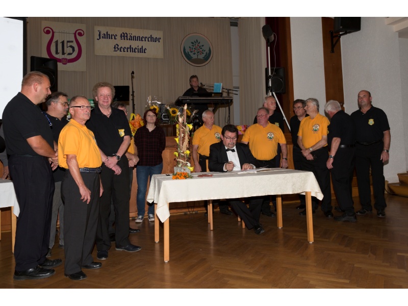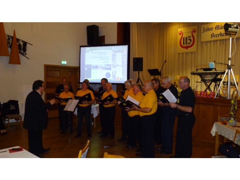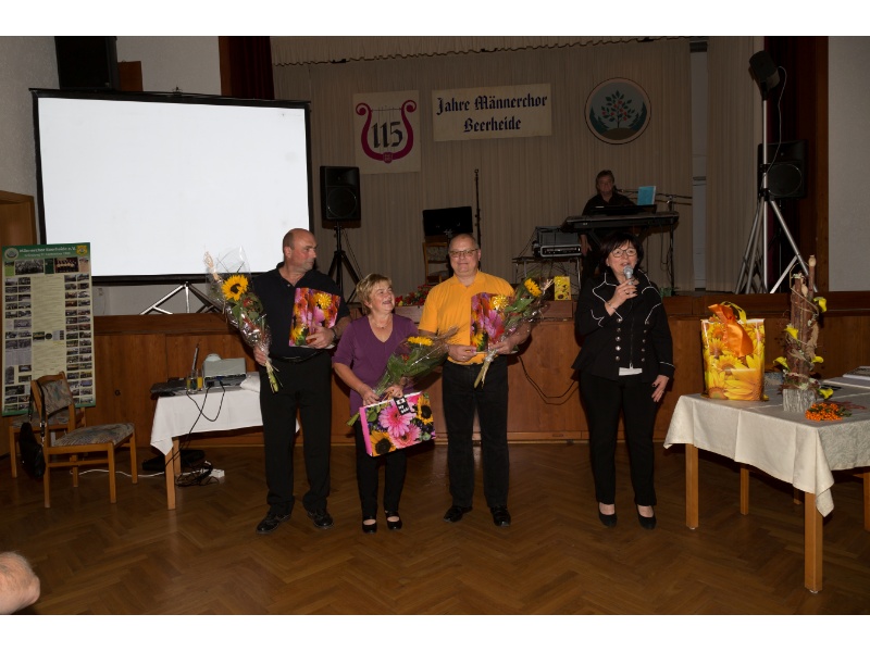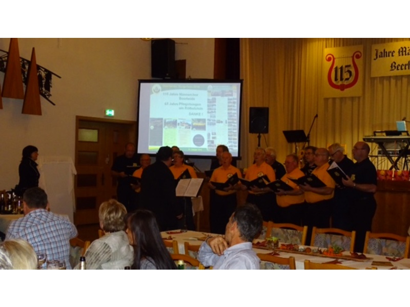 Die Ehrung der Sänger mit einer Chronik-Tafel war eingebunden in ein Programm des Chores. Es wurden 6 Lieder vorgetragen, darunter 2 Stücke mit Text und Musik aus der Feder von Günter Fischer. Dies sind die Titel „Am Röthelstein in Beerheide“ und „Heimat“, die auch als Liedpostkarten veröffentlicht worden sind. Alle weiteren 4 Lieder, die der Chor zu Gehör brachte, wurden von Günter Fischer speziell für den Beerheider Männerchor arrangiert, u.a. auch das „Beerheider Lied“.