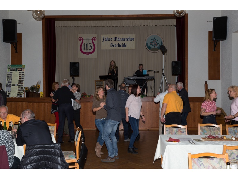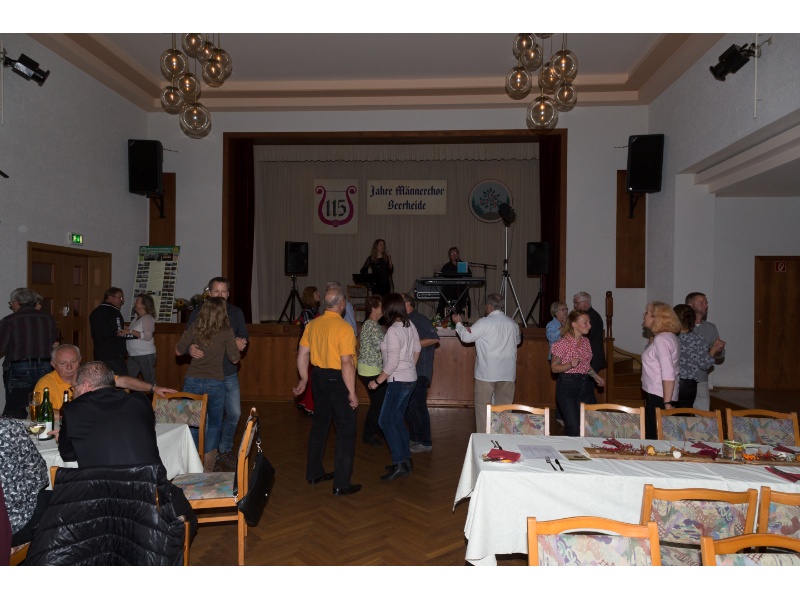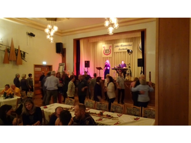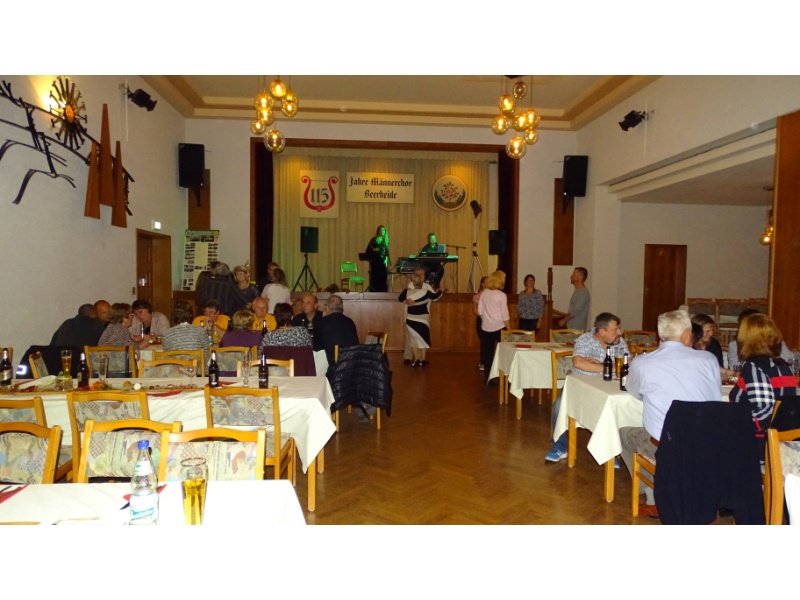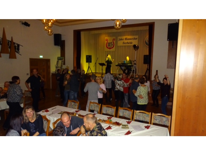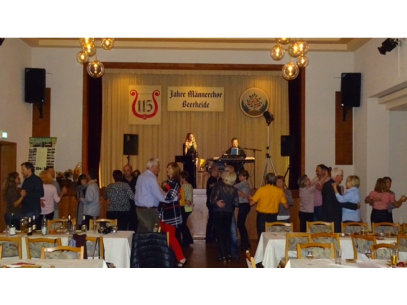 Nach den Ehrungen erklang Tanz- und Unterhaltungsmusik vom Duo „Flair“ aus Auerbach, die bei allen über 100 Gästen des Bürgerfestes sehr gut ankam, sodass bis weit nach Mitternacht fröhlich gefeiert und getanzt wurde. Der Bürgerverein hatte den Saal des Kulturhauses dazu wunderschön herbstlich dekoriert, ein von Thomas Pohl hergestellter Weinbrunnen für den Ausschank des Rebensaftes aus der Partnergemeinde Ballrechten-Dottingen erlebte seine bestens gelungene Feuertaufe - und für das leibliche Wohl sorgte das Team der Familie Nerger, unterstützt vom Bürgerverein Beerheide.