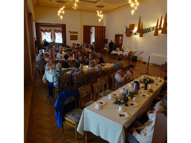 Anhaltend großer Beliebtheit erfreut sich die alljährliche Beerheider Seniorenweihnachtsfeier. Gelebtes Miteinander von Alt und Jung war am 2. Adventswochenende bei dieser Veranstaltung zu spüren. In dem weihnachtlich geschmückten Saal des Kulturhauses Beerheide wurde gemeinsam Kaffee getrunken mit einheimischen Backspezialitäten aus Annette´s Backstübel und köstlichem Wein aus der Partnergemeinde. Die Ortschaftsrätinnen Sabine Neupert und Katja Wolf sorgten zusammen mit der Familie Nerger für das leibliche Wohl der Gäste. Ausgestaltet wurde der Nachmittag mit einem niveauvollen Weihnachtsprogramm der Kinder-Gruppe „Plohni Kids“ unter Leitung von Kathleen Weißflog aus Beerheide, im zweiten Programmteil vom Quartett des Jugendblasorchesters Auerbach und dem Männerchor Beerheide unter Leitung von Andreas Schmidt sowie Bettina Groth, die die Veranstaltung moderierte.